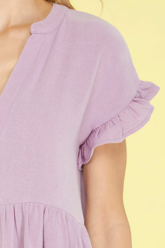 Stripe Sleeveless Notched Ric Rac Mini Dress