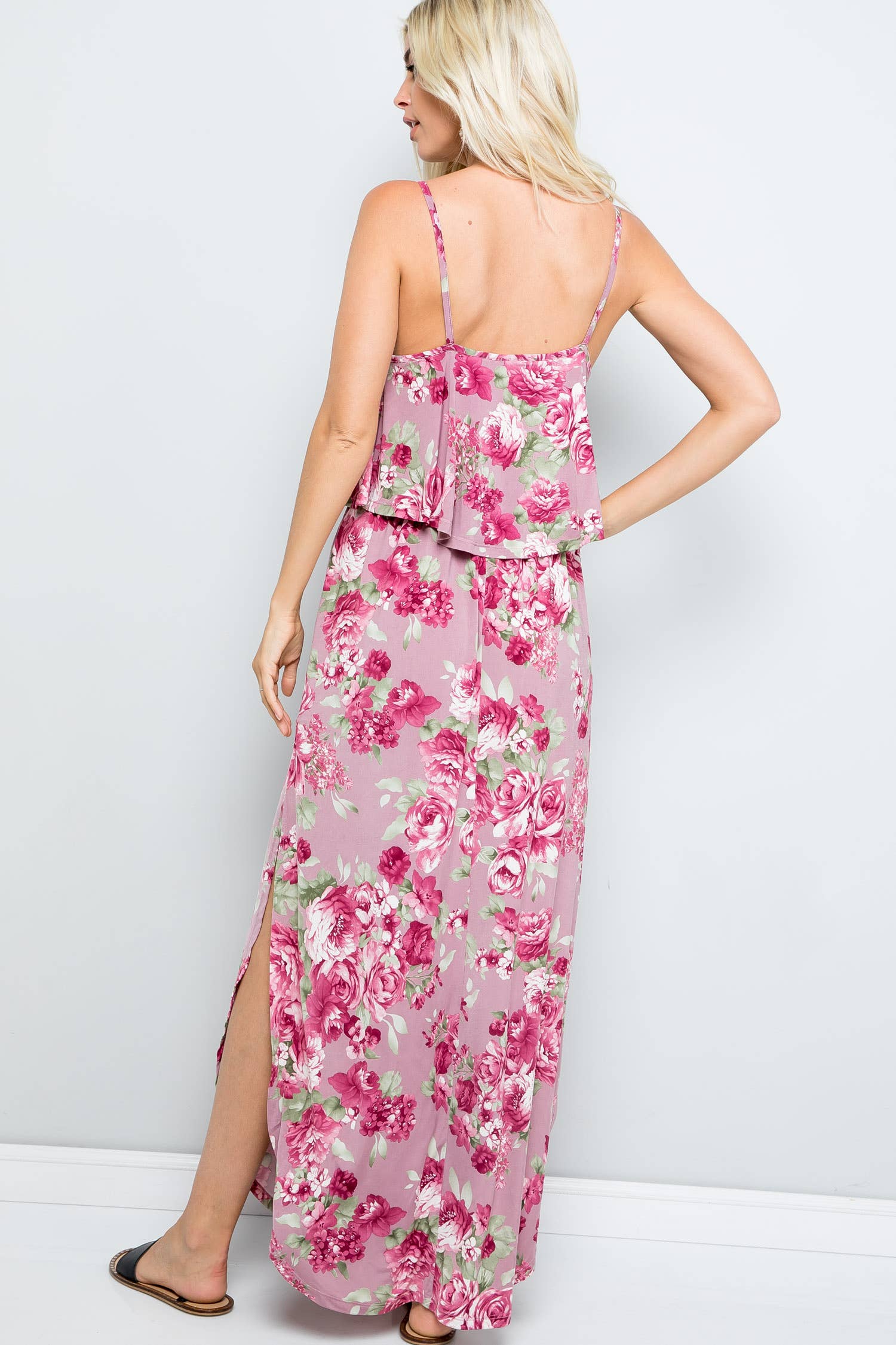 Mauve Floral Print Casual Ruffle Maxi Dress